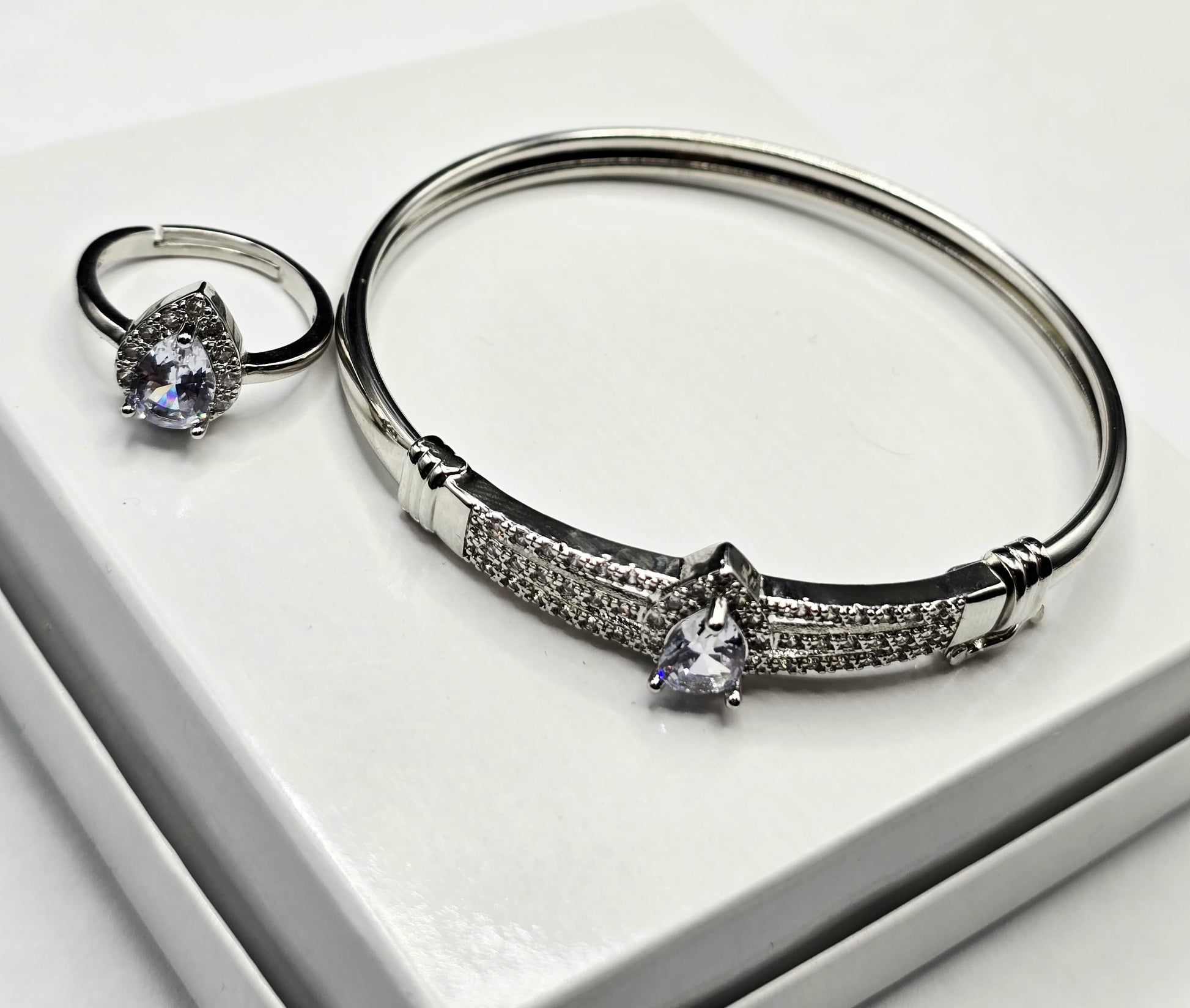 The sleek, silver-tone band on the cuff and ring flows into this stunning centerpiece, creating a look that is both powerful and graceful. It’s jewelry that carries the weight of a meaningful sentiment, making it the perfect emblem for an unbreakable bond.