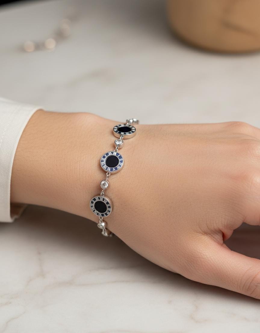 A reflection of timeless grace. Inspired by the precise moment of balance, this exquisite bracelet features three striking medallions—each a harmonious blend of profound black and polished silver—separated by delicate, sparkling crystals. The Lunar Equinox design transcends trends, offering an enduring piece that speaks volumes about your refined taste. It’s an investment in elegance, destined to be cherished for years to come.