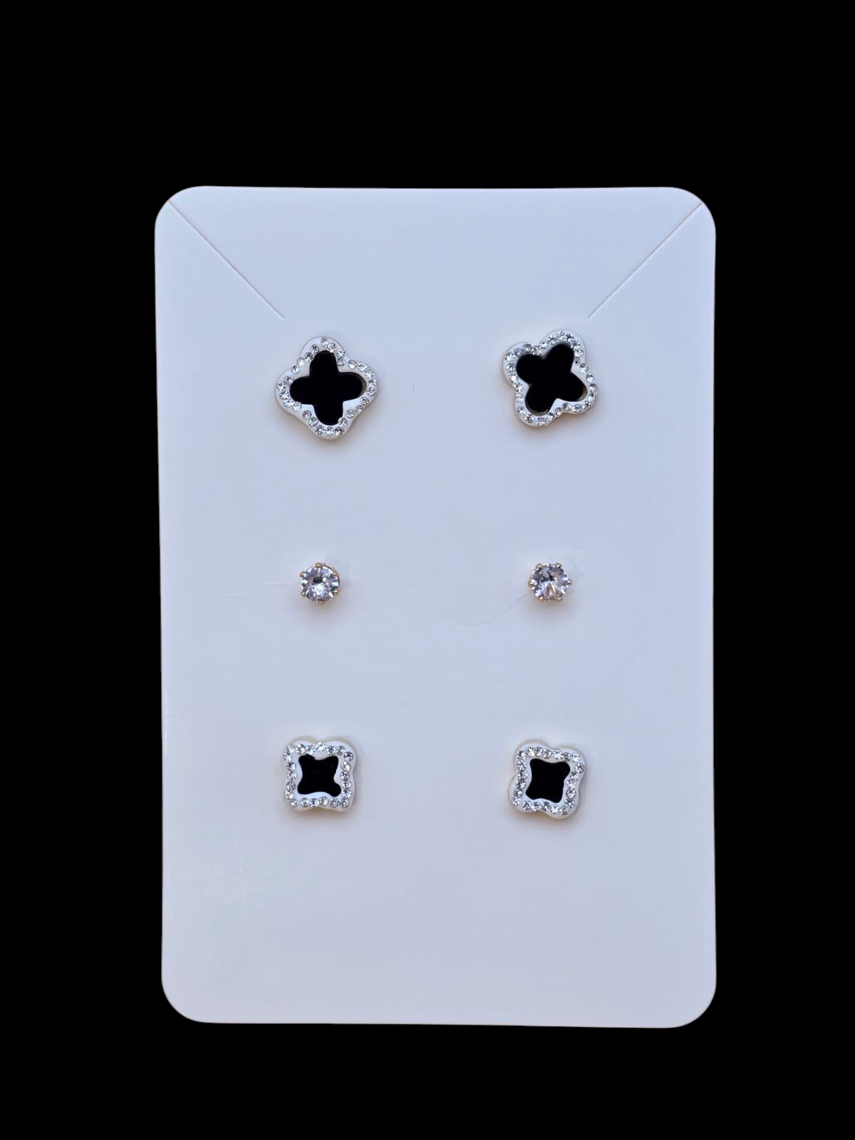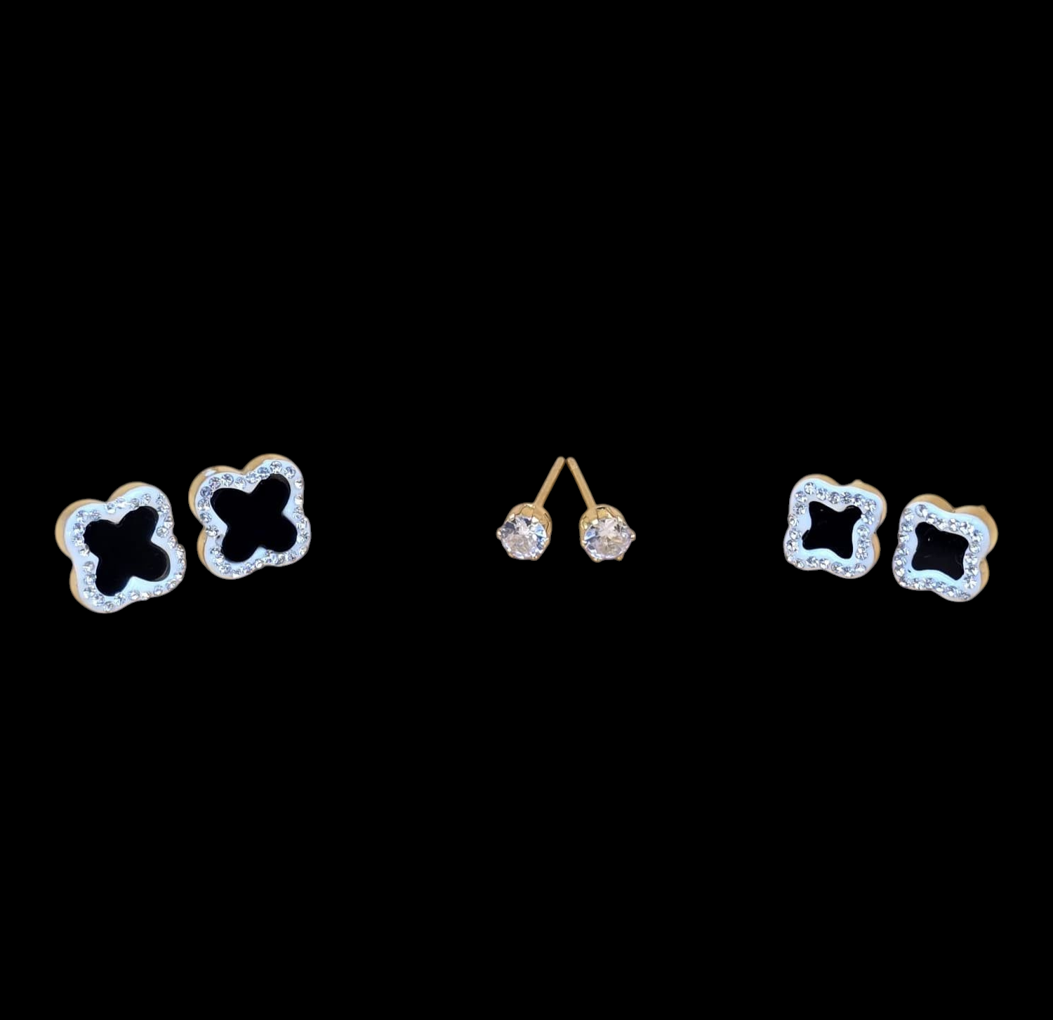 This duo features two pairs designed to light up your look and your spirit. The bold clover studs—sleek black hearts embraced by a glittering halo—represent an unwavering spirit and the deepest kind of luck. Paired with the classic solitaire studs, they offer a pure, dazzling light that mirrors the hope and joy you carry within.
